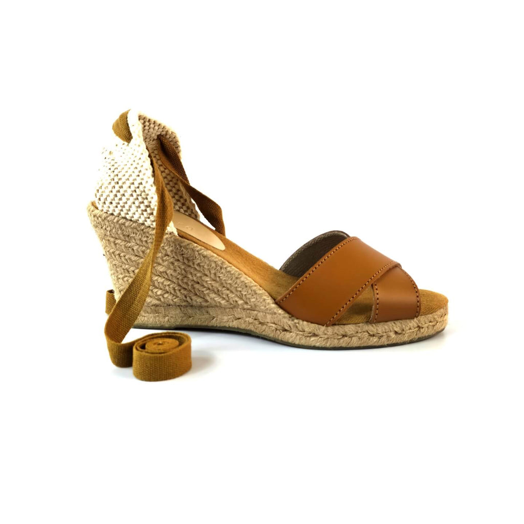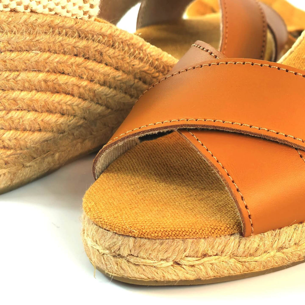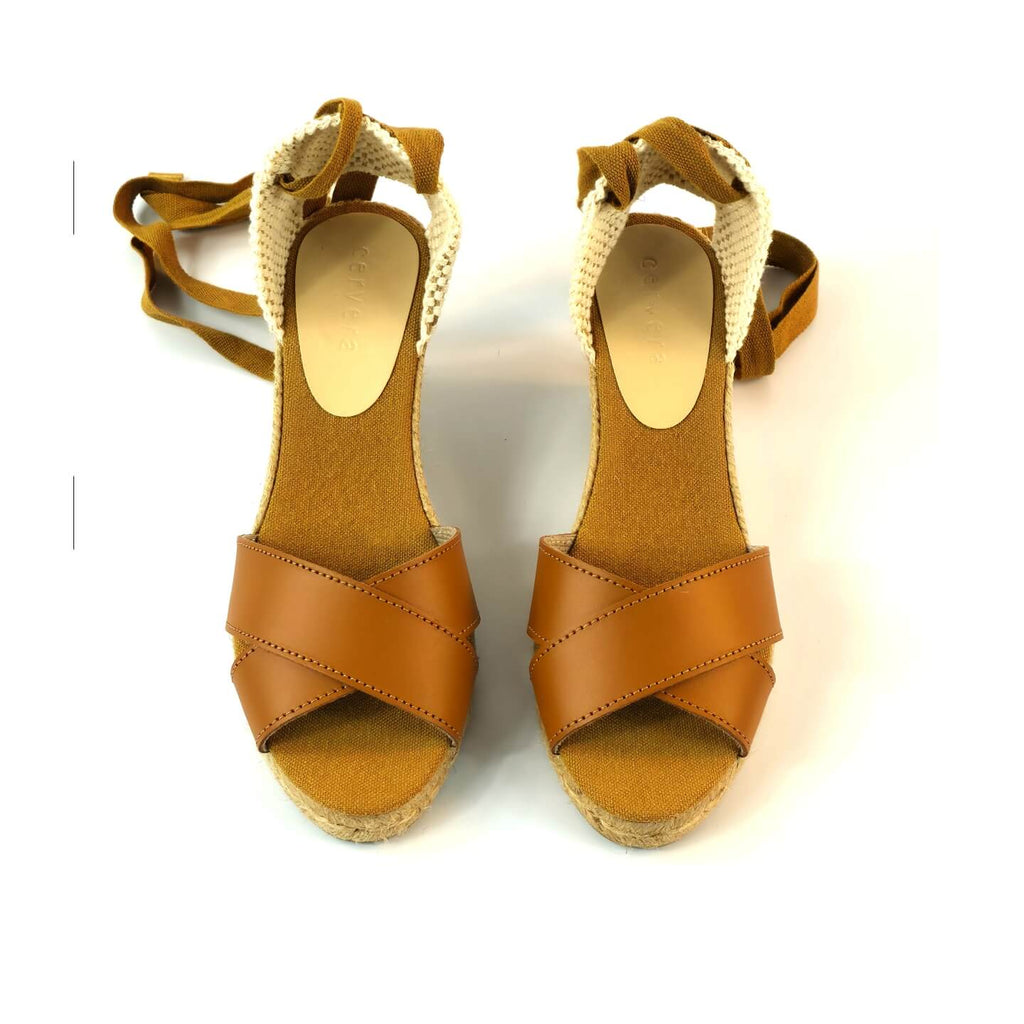 Sandália Anabela Brites Salto Médio Caramelo Cervera — Conforto e Estilo Atemporal